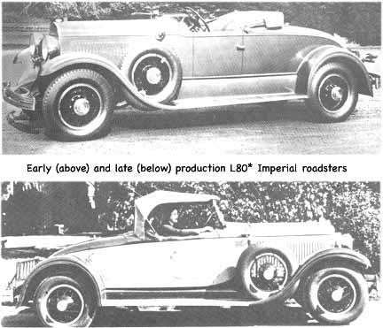 Not far from my home there used to be a father and son, George and Bob Locke, who each had an Imperial L *. George had a sedan and his son Bob had an early style roadster. The word "early" is used to designate this roadster because, you guessed it, there were two completely different roadster bodies used on the Imperial L *. The early style body was really a continuation of the 1928 roadster body, and was succeeded by the new style roadster body in the spring of 1929. This change to the new style roadster occurred at car EP-455S.