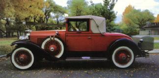 It was undoubtedly the handsomest American car of its day. Its "clamshell" fenders were long and sweeping, its silhouette was low, its radiator -- after the fashion of the fabled "Hisso" was tall and relatively narrow. And the two-tone color combinations, a novelty in 1927, were sensational. Hoods and cowls were finished in darker hues than the rest of the body, while "cheat" lines (at the bottom of the pillars) and unusual belt molding effects served to accentuate the car's compactness.